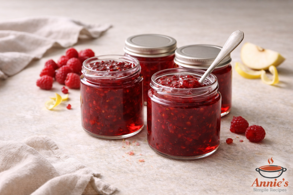 This is a softly textured, well-balanced jam that brings together the brightness of raspberries with the gentle sweetness and natural pectin of apple. The apple supports the raspberries rather than overpowering them, helping the jam to set cleanly while keeping the flavour fresh. It is a reassuring recipe for beginners, with clear setting cues and familiar ingredients that behave predictably in a domestic kitchen. Recipe Information Block Makes: About 4 small jarsPrep time: 20 minutesCooking time: 35 to 45 minutesEquipment: Large heavy-based saucepan, wooden spoon, small plate, clean jars with lids Ingredients 700 g raspberries 1 large cooking apple 500 … Read more